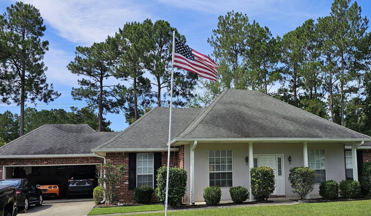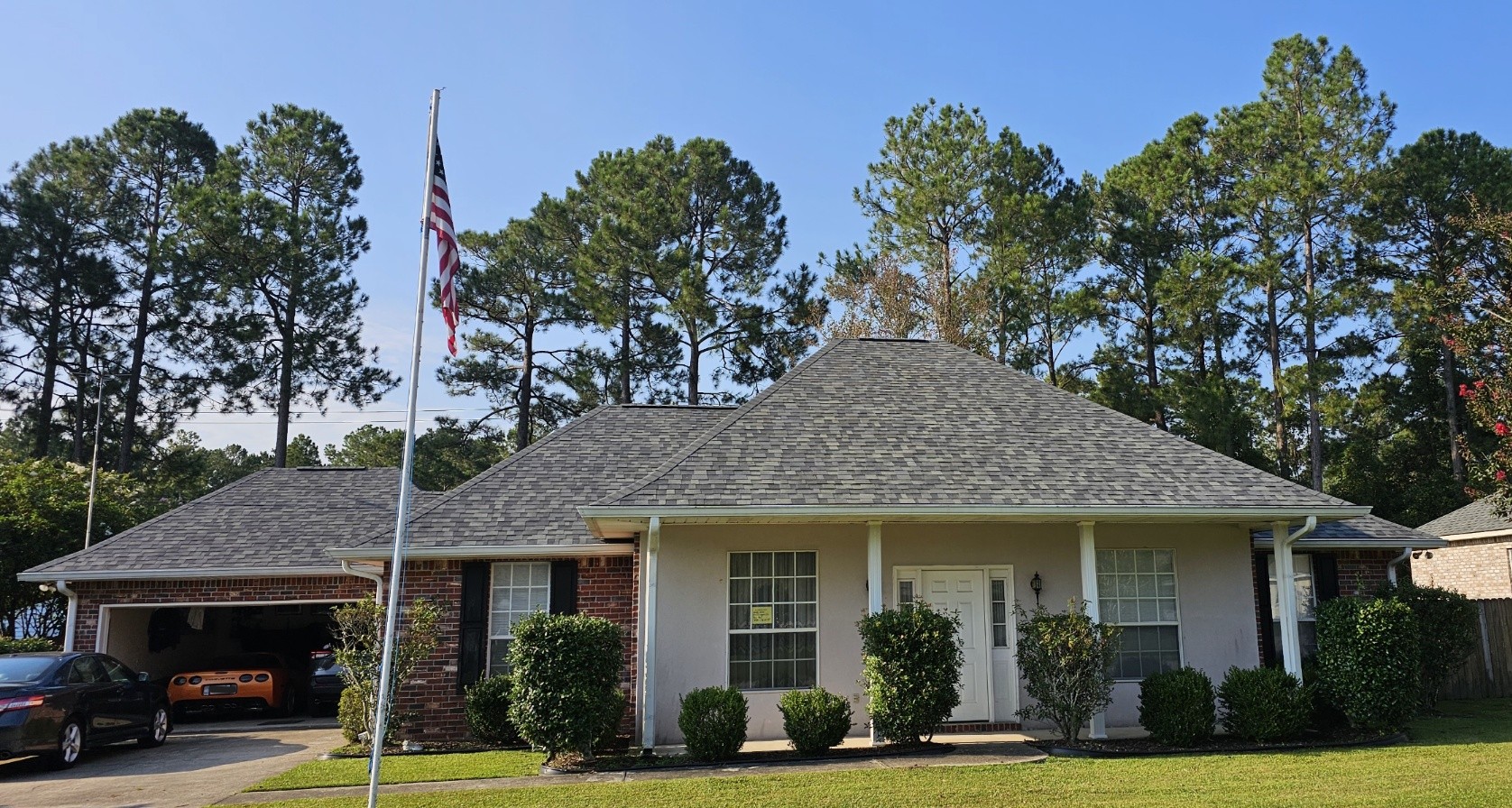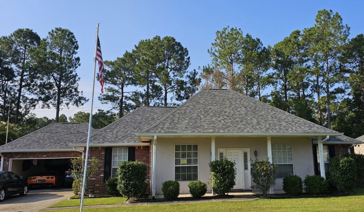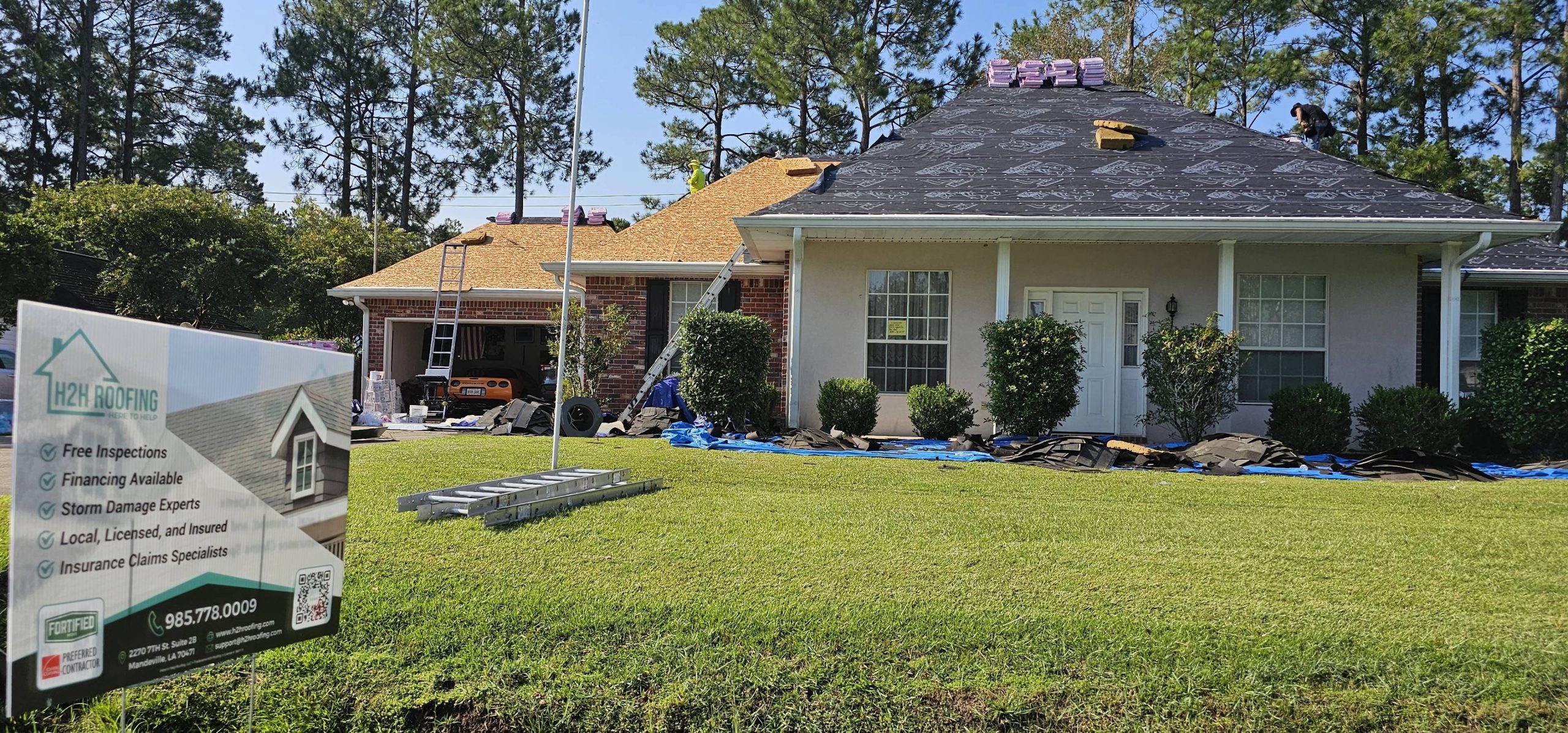 Mr. M. had his roof replaced almost 20 years ago. In a quiet neighborhood located in Abita Springs, with very little tree coverage on his property, the effects of wind and rain were damaging. Upon completing a complimentary inspection, H2H was able to identify severe granule loss, missing/creased shingles, failed ventilation accessories, and the improper installation of waterproofing transitions from the shingled roof to the metal patio cover which resulted in active leaking during rainstorms. Mr. M. opened a claim with his insurance company and was more than happy to receive the news that he was approved for a full roof replacement. He received an upgrade to his roof's protection when we installed OC Duration shingles, and in addition to that, we were able to provide him with an Owens Corning Extended Coverage Warranty. Owens Corning roofing components including shingles, starter strip, underlayment, ice & water and hip & ridge were all installed on this roof replacement which qualifies it for the extensive 50 year warranty. Whether this home is left to a family member or sold on the market, the warranty is transferable 1 time through its life. This homeowner is more than pleased with his new roof and can rest assured knowing that H2H is always Here to Help! A very special thank you to Mr. M. for his service.
