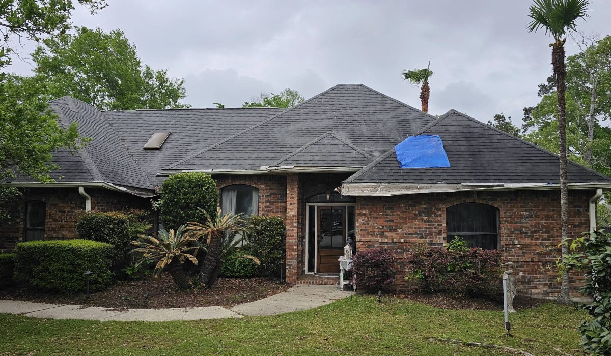 Our community and neighbors know that when they experience damage to their property, H2H will be there to help guide them through the repair process. In Madisonville, this family had the unfortunate experience of a neighbor's tree falling onto and putting a hole in their roof. H2H worked with the insurance company and was able to provide not only a full roof replacement featuring our Owens Corning extended coverage warranty but also replaced damaged fascia for function and aesthetic appeal. Additionally, we replaced the entire front elevation of gutters, complete with matching downspouts and gutter guards. Very special thank you to this homeowner for his service.